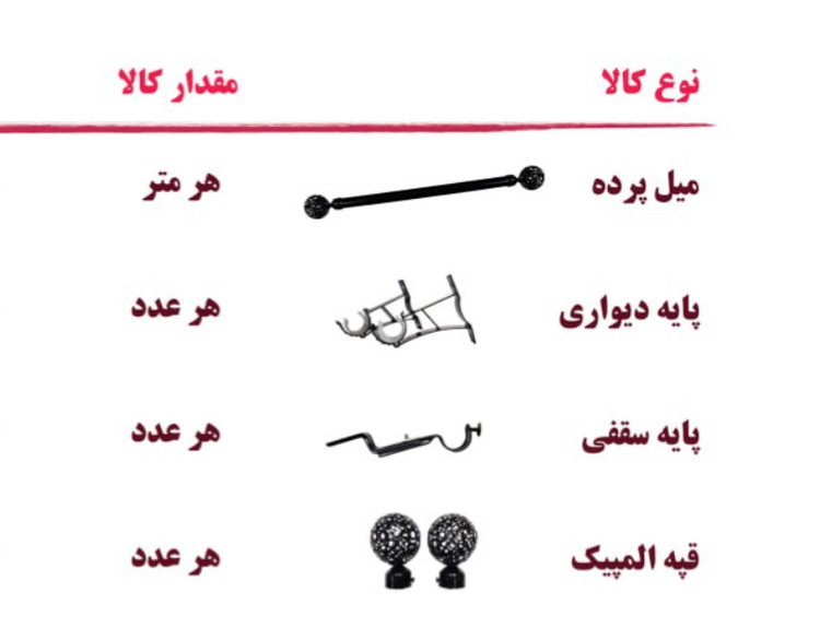 / میل پرده / پایه دیواری / پایه سقفی / بست قپه المپیکی